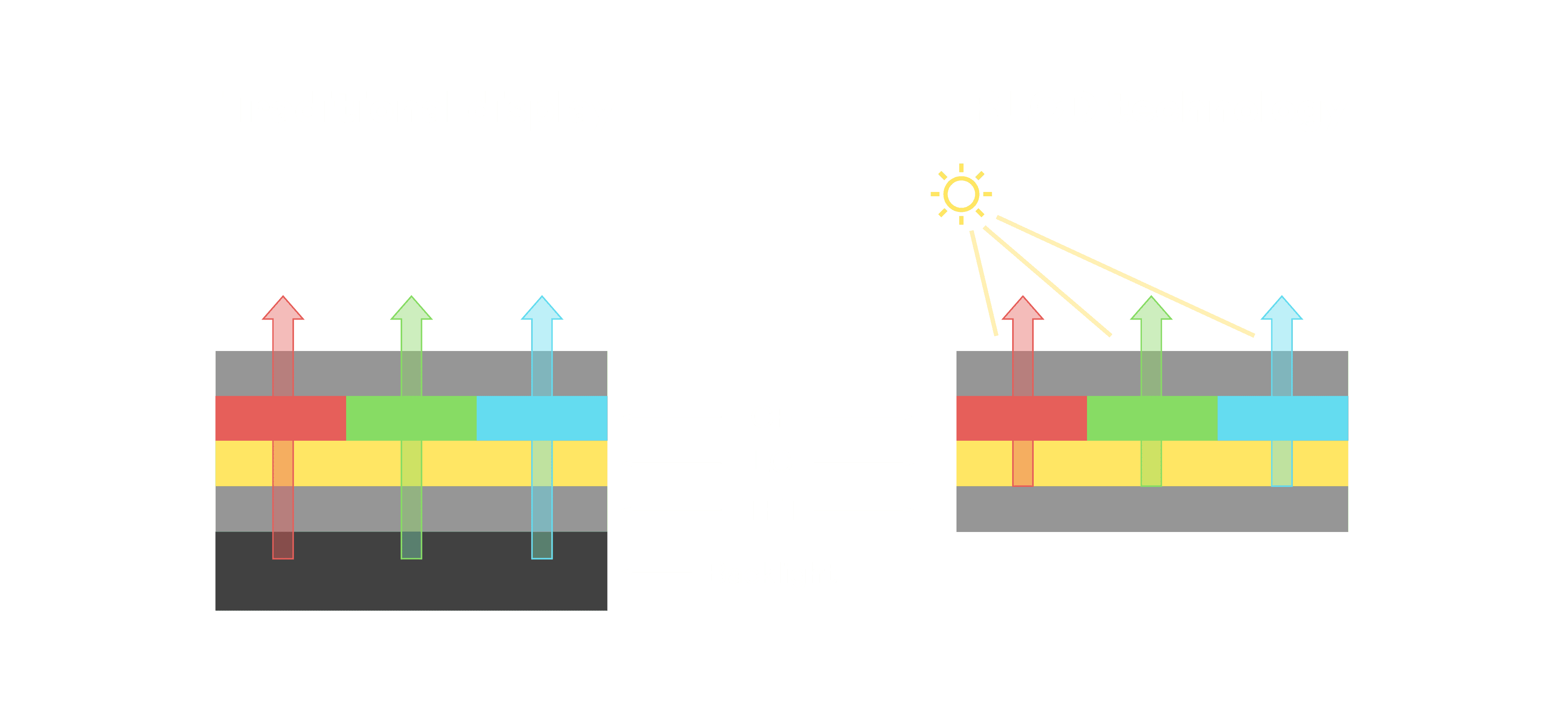 与传统需搭配背光单元的液晶显示相比,,,,反射式液晶技术不仅更省电、、更轻薄,,,,且即便在艳阳下仍能清晰显示。。。此外,,,,少了背光单元,,,也大幅降低了 LED 蓝光伤害眼睛的疑虑。。。