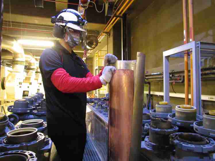 开云电子将废弃物转化成有效的工业或民生原物料,,,,图为废铜液淬炼后再制成纯度极高的铜管