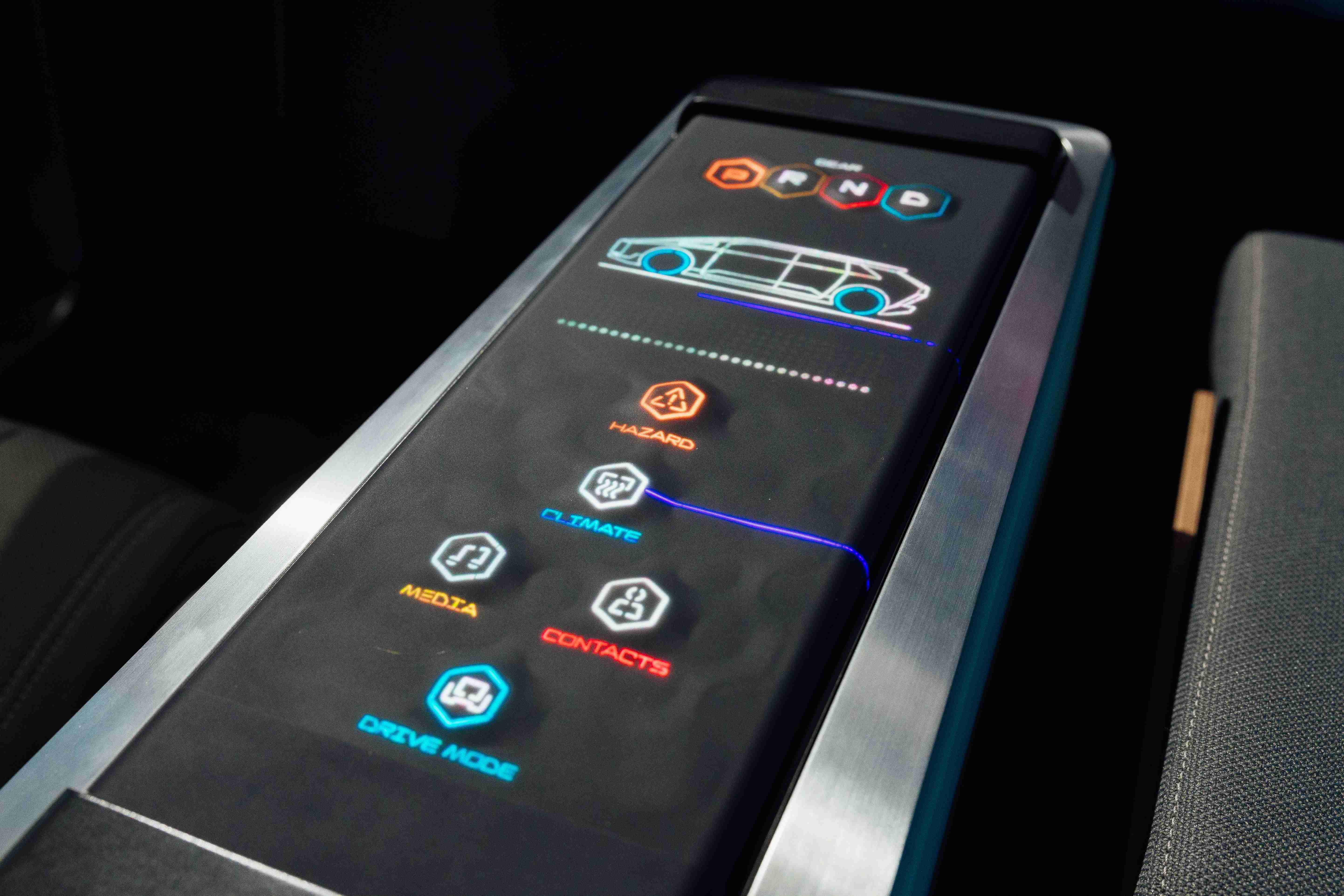 多变形态中控显示(Morphing Center Control)拥有动态变化的表面,,平时常态显示车辆功能,,进一步操作时,,则会隆起成为3D 按钮,,,并在触控时以震动回馈,,以精细的操作开创人机互动新境界。。 ![]()